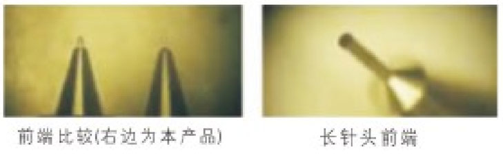 此产品点胶具有高流动性,无静电产生。且针头前端进行抛光处理,能够防止由于点胶针头前端和点胶材料表面张力的差而产生的点胶偏差及材料的爬胶。
